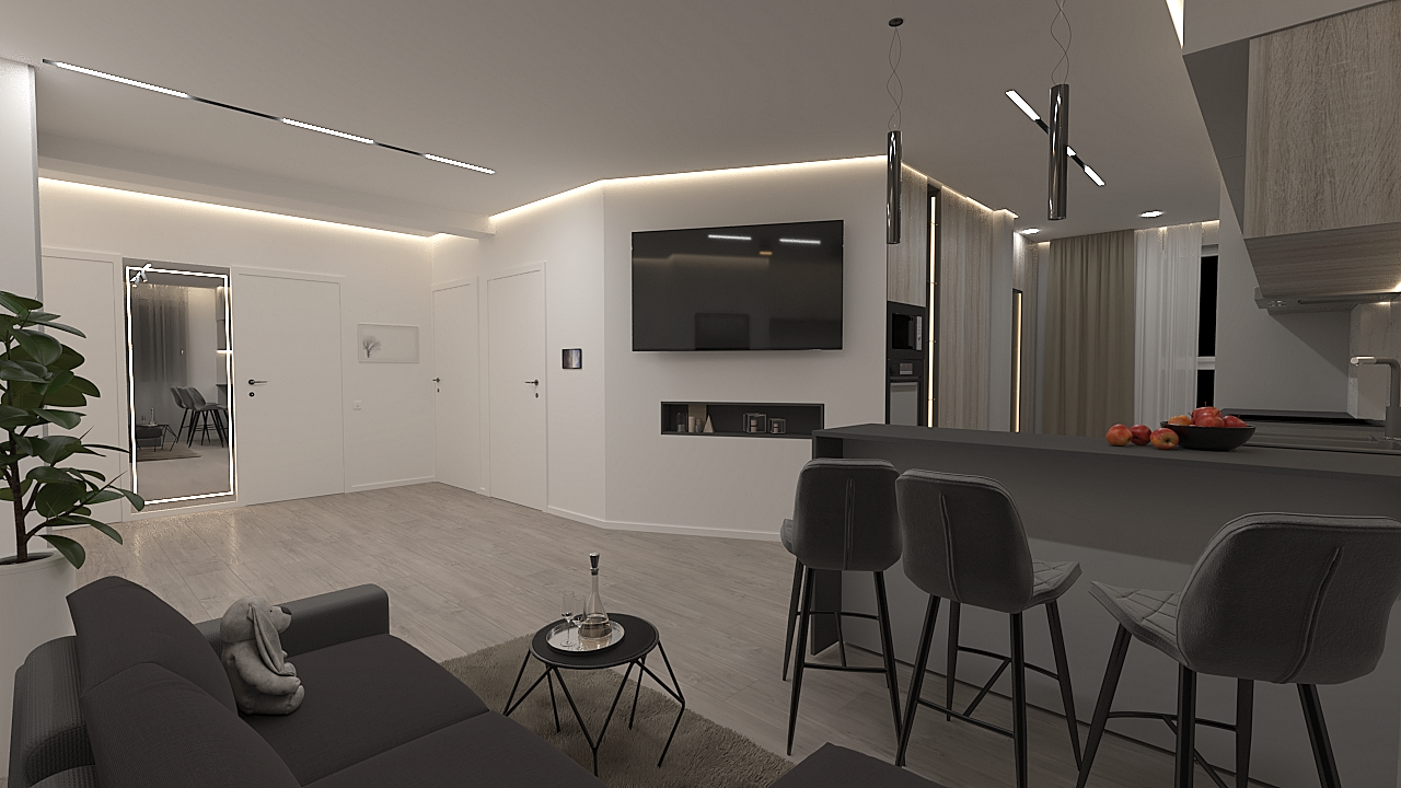 The apartment design project for a small family was created based on the client’s individual preferences. The space is organized ergonomically, ensuring comfort and convenience in everyday life. A functional layout, stylish interior, and thoughtful details make the apartment both cozy and practical for the whole family.