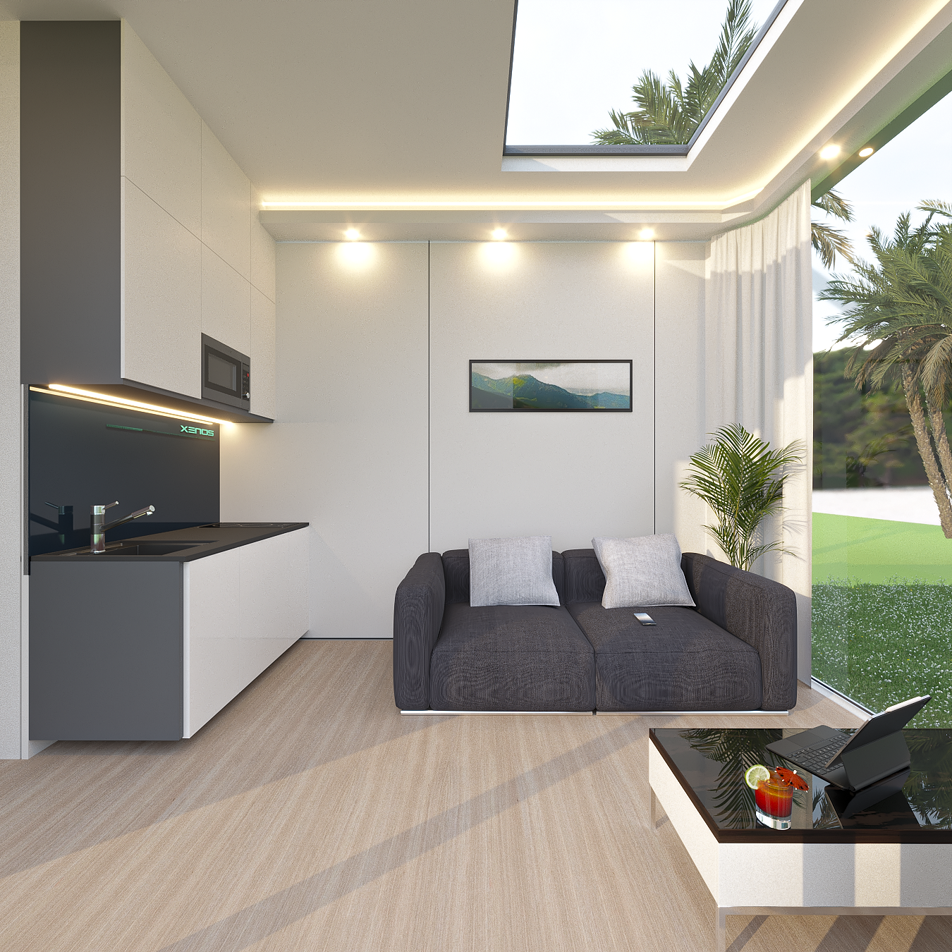 The mobile home for a mini-hotel in Greece combines style, comfort, and functionality. The compact space includes a cozy bedroom, a small but fully equipped kitchen, and a modern bathroom. The design is inspired by the Mediterranean atmosphere: light tones, natural materials, and panoramic windows that create a sense of spaciousness and a connection to nature. An ideal solution for a comfortable seaside getaway.